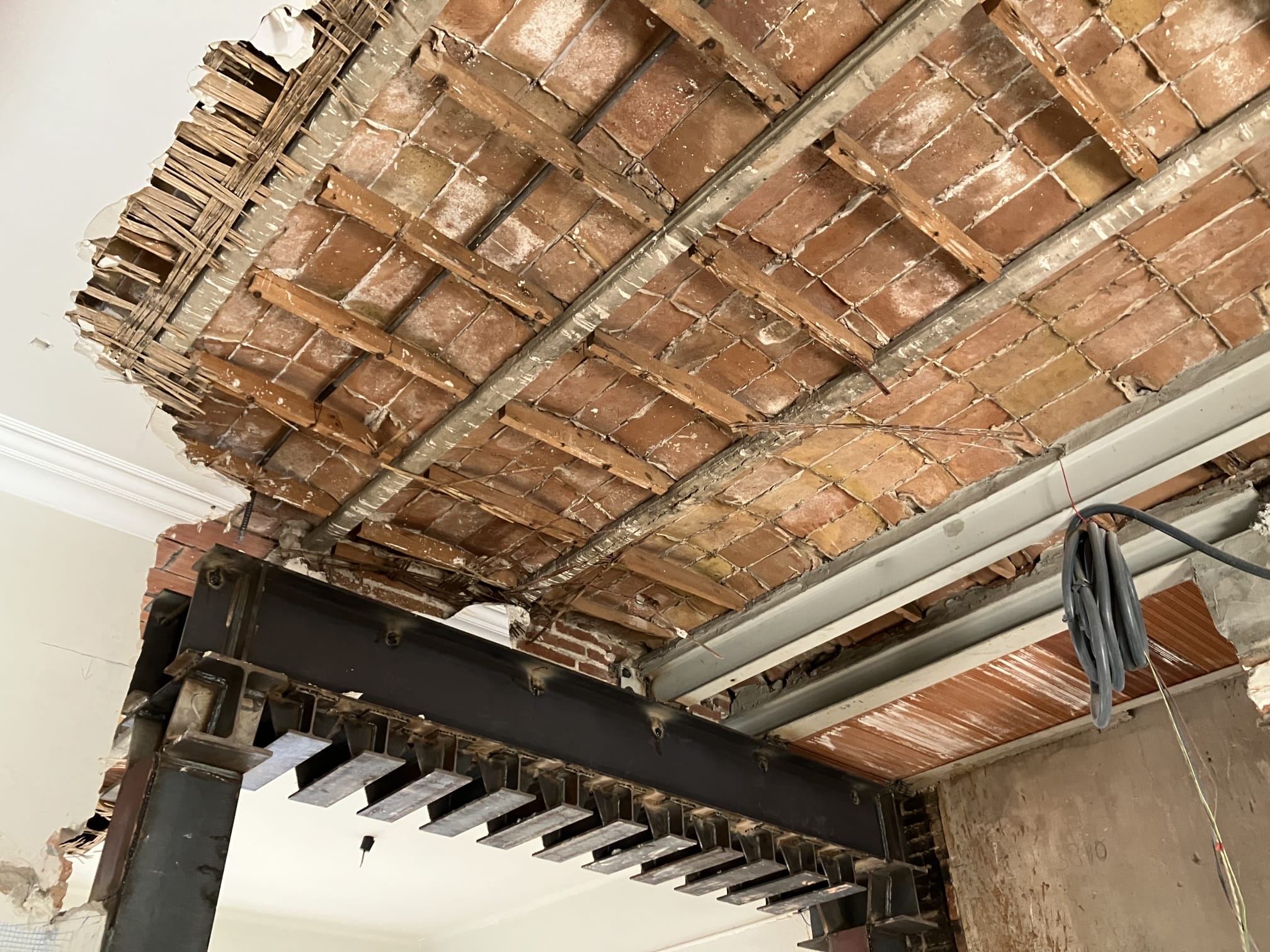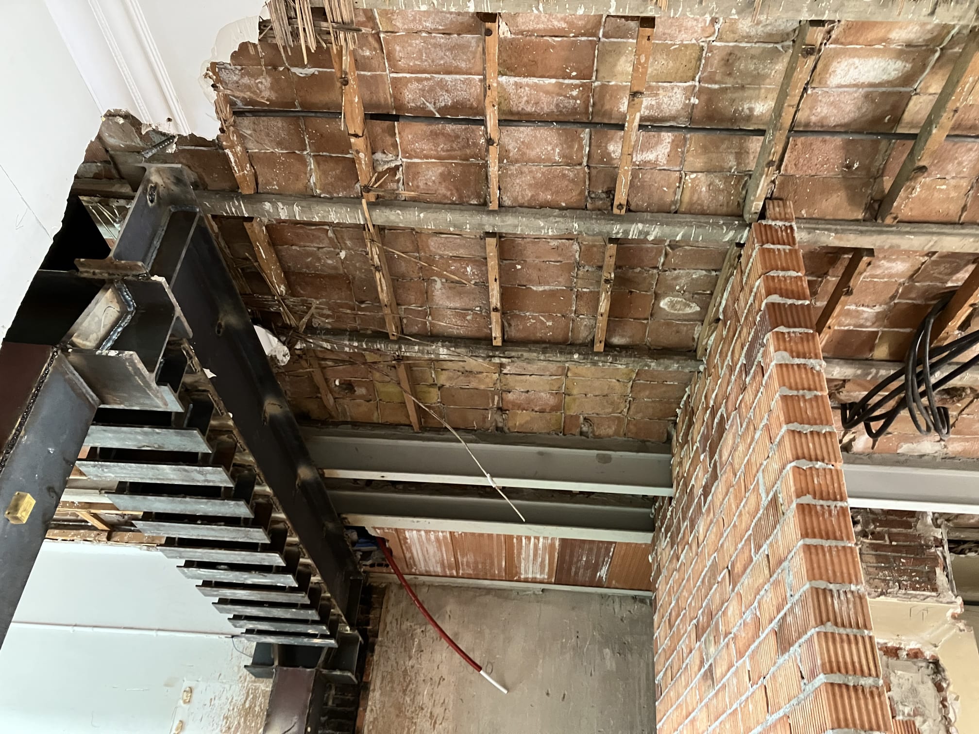 Es van realitzar varis estintolaments però el més important va ser a façana on es va realitzar un pòrtic metàl.lic que estintolava la paret de façana i donava estabilitat a l’estructura. Els fonaments d’aquest pòrtic es van realitza amb micropilots.