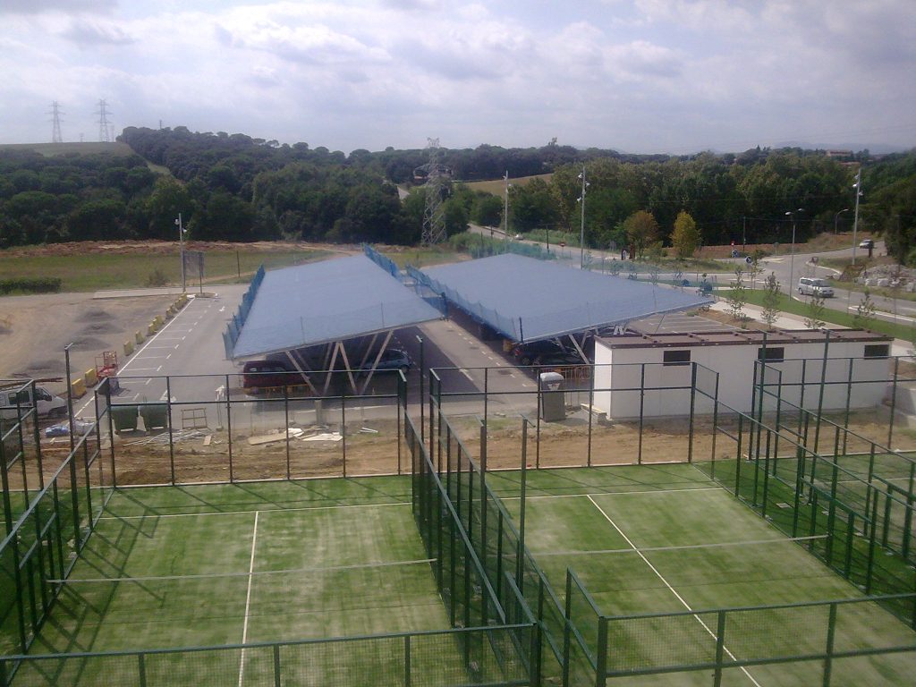 Marquesines i instal.lació fotovoltaica en un aparcament a Llinars del Vallès